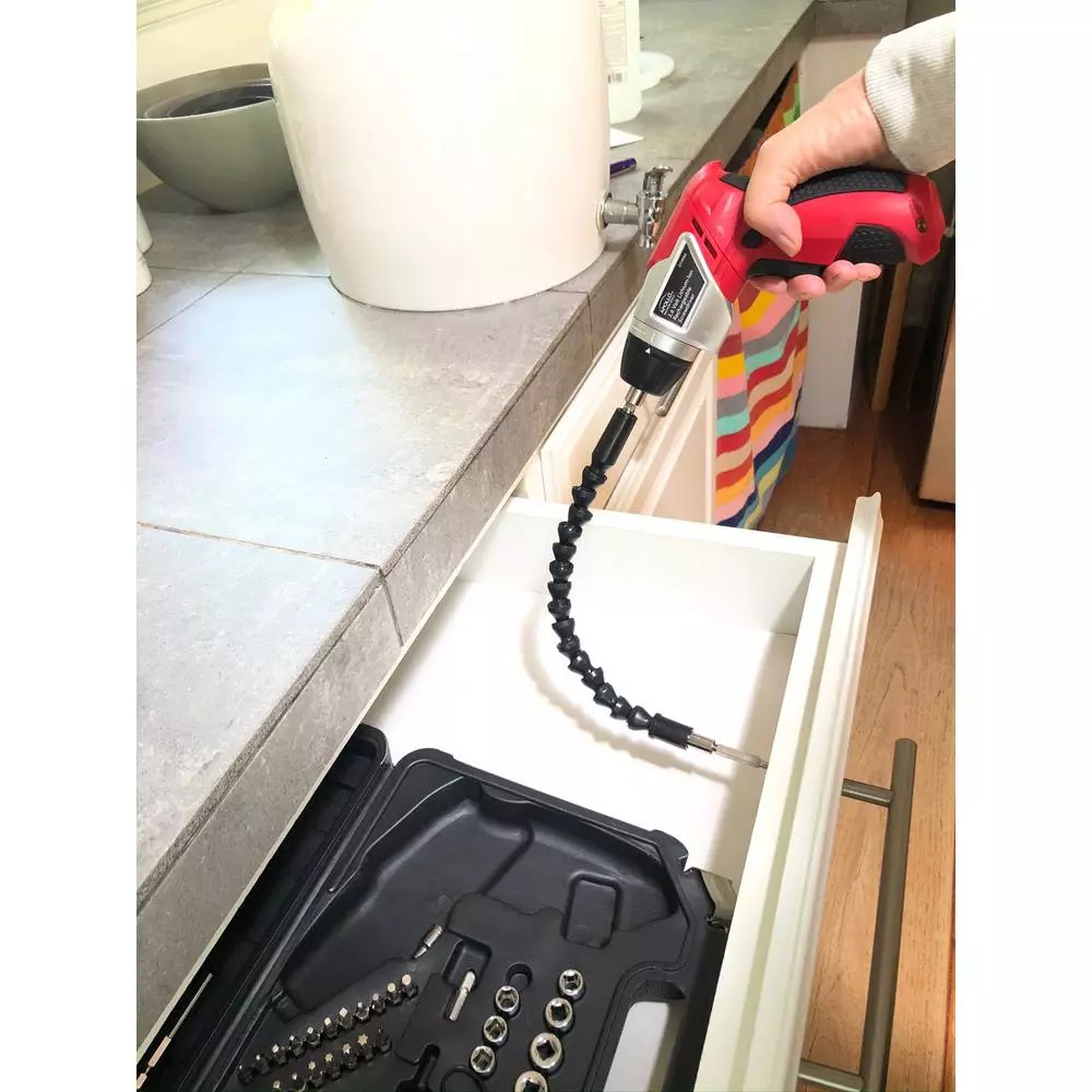 - Accessory set includes screwdriver bits, HSS drills bits, sockets and a flexible bit extension to reach tight places