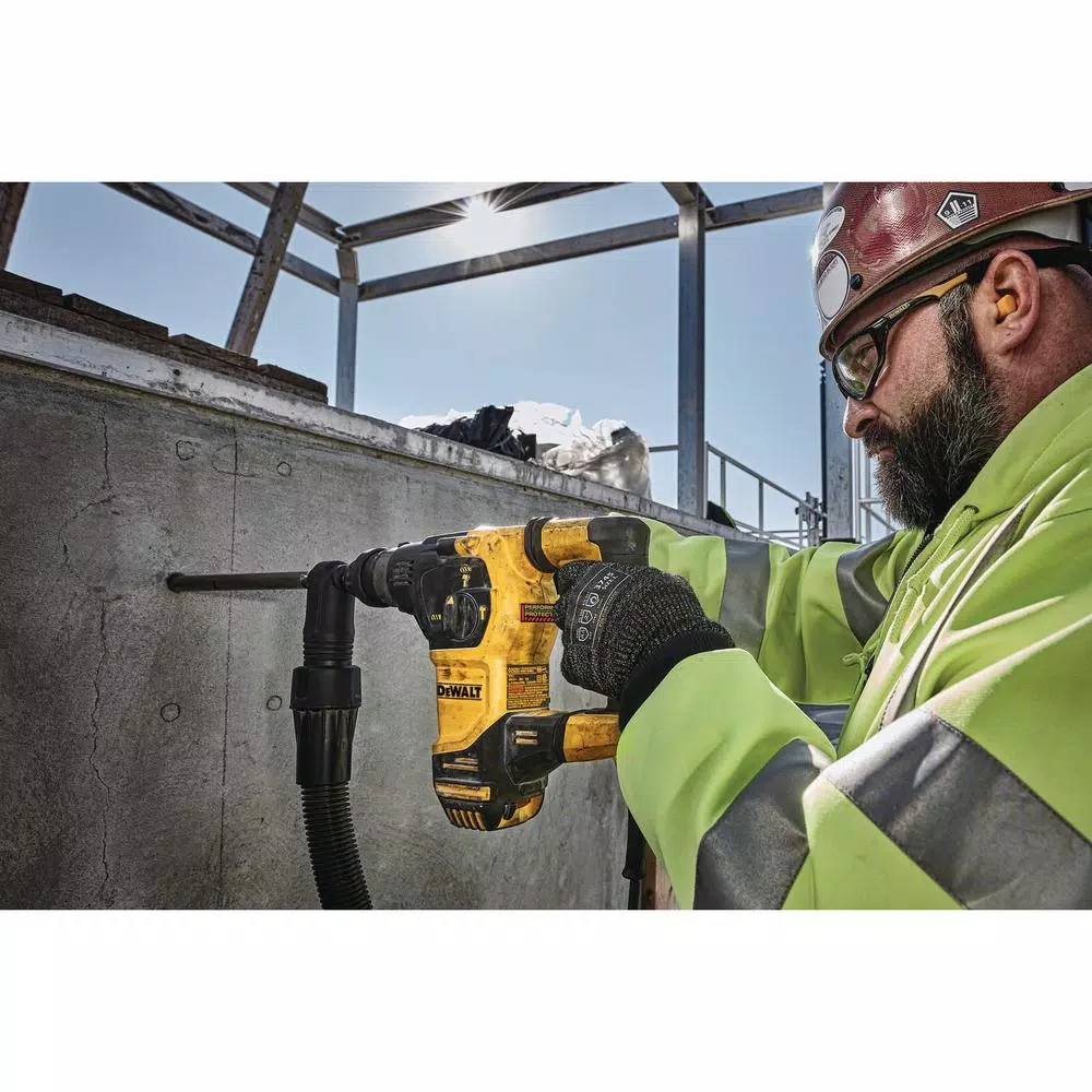 Our 1-1/8 in. SDS Plus Rotary Hammer Kit with Onboard Dust Extractor gives you all-day performance and OSHA Table 1 compliance. It’s an easy, portable solution built to conquer jobsite demands. The durable German-engineered hammering mechanism delivers 3.5 joules of impact energy, giving you the speed to get through jobs fast. SHOCKS Active Vibration Control reduces vibration felt at the handles for less user fatigue. with hard-hitting power, fast drilling speed, and a balanced design, this hammer is ideally suited for large diameter hole drilling in the hardest concrete. The included Onboard Dust Extractor has a powerful fan assembly for maximum suction and efficient dust collection. It allows users to drill up to 1 in. Dia, to depths up to 8 in. Install large diameter sleeve, stud/wedge, and screw anchors.