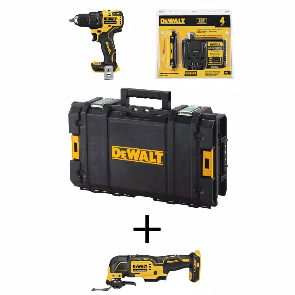 The DCD708 20-Volt MAX Compact Brushless Drill/Driver is the most compact DEWALT Drill in the 20-Volt MAX Platform at 6.3 in. front to back. The drill features a high performance brushless motor that delivers 340 Unit-Watt Outs (UWO) and LED light to provide optimum illumination in dark spaces as you work. for increased comfort, the handle features an ergonomic design for balance and easier tool control along with a removable belt hook. Backed by a DEWALT 3-year limited warranty so you can buy with confidence. The DCS354 cordless oscillating multi-tool has a powerful brushless motor providing up to 57% more run time over a similar brushed tool.