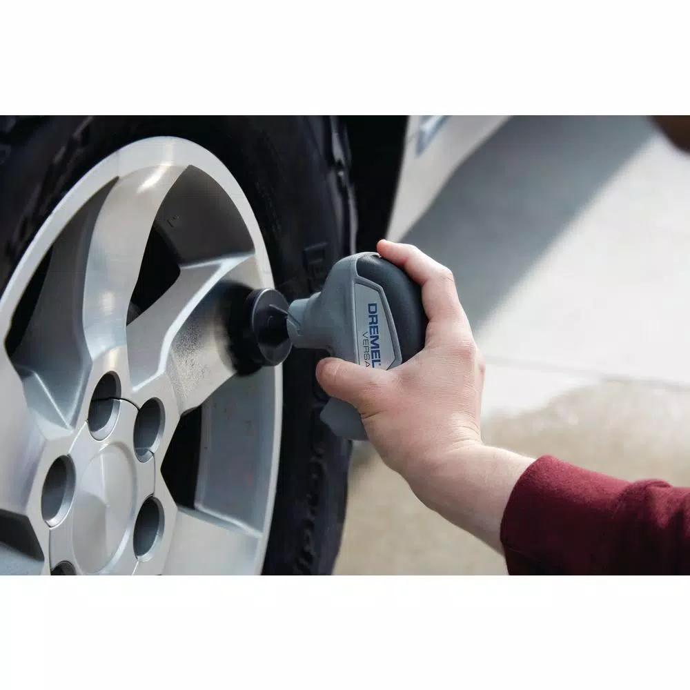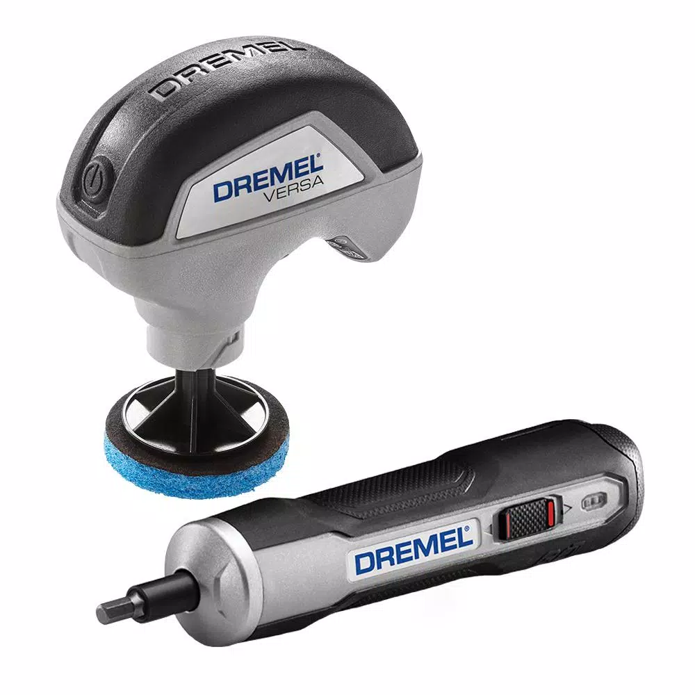The Dremel GO is a cordless screwdriver unique in its category. Powered by a 4-Volt Lithium battery, it is always ready to go and the USB charger makes charging fast and convenient. The 360Β° RPM of torque makes the Dremel GO a superior tool in its category as it drives screws 2X faster than similar competitive products in the market. The overdrive protection feature also prevents screw stripping and material stripping. Intuitive in its design, the Dremel GO starts with a simple push for both driving and reversing screw applications. With its compact driving power, Dremel GO is a perfect replacement for manual screwdrivers inside the house. Give up the elbow grease. Spend less time cleaning and let the Dremel Versa do the scrubbing. This powerful, high-speed cleaning tool is the solution to conquering the small, tough cleaning jobs. With 4 versatile accessories, you can effortlessly scrub away dirt, scum and grease from every surface inside and outside your home. From polishing delicate surfaces to powering through rust, you can quickly change accessories to take on every chore. The water resistant design and retractable splashguard are perfect for using the Versa in wet and dry applications. Once youβve blasted through the grime, plug the Versa into the universal micro USB adapter for a quick, 2-hour charge. Let the Dremel Versa do the work, no need push on the tool like you would with manual scrubbing; enjoy the clean without the effort.