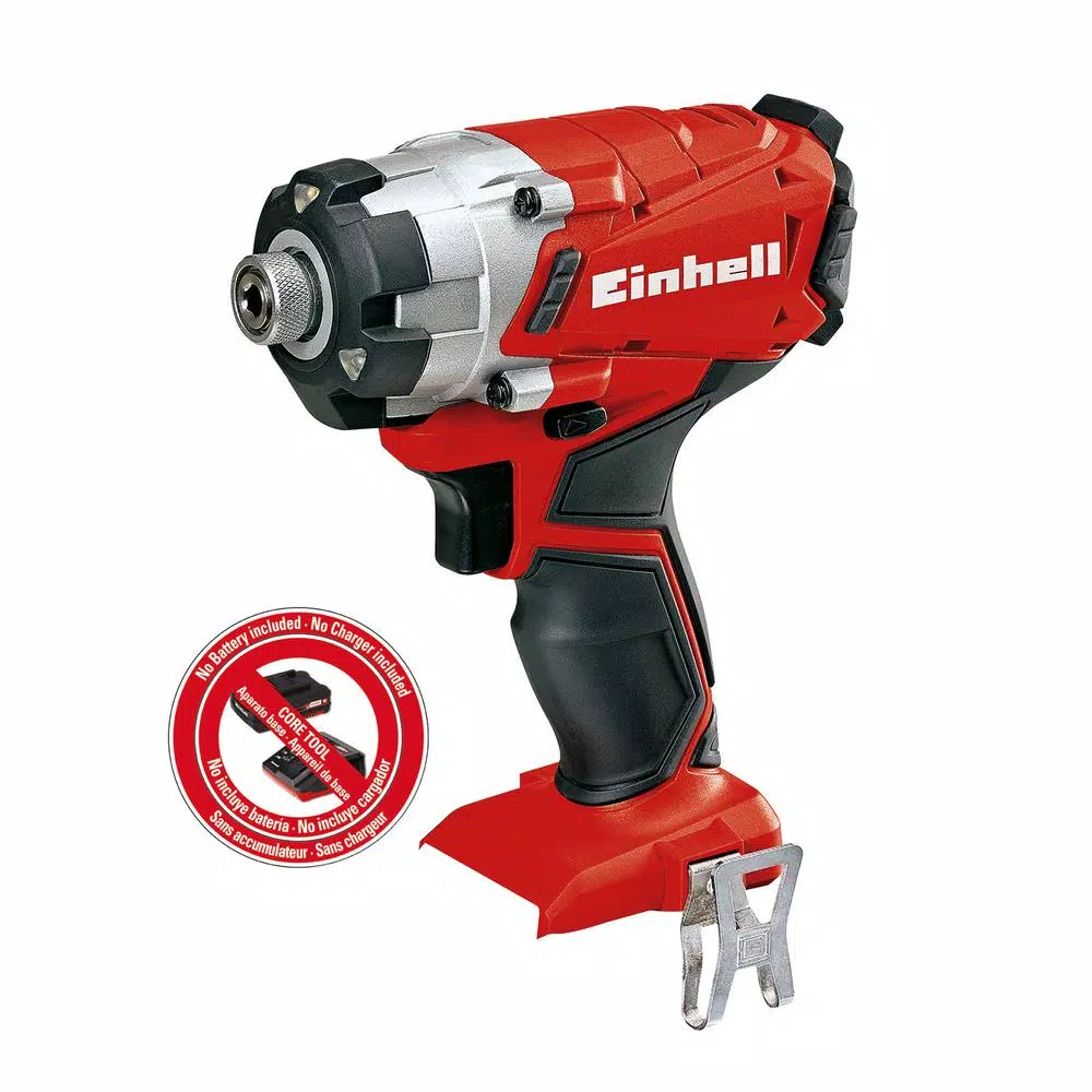 An expert tool for expert craftsman, the TE-CI 18/1 Li 18-Volt Cordless Impact Drill from Einhell delivers more power and runs longer than conventional carbon brush motors, ensuring continuous, reliable use for your most challenging fastening projects. With up to 1,293 in./lbs. (140Nm) of torque, Einhells impact driver delivers the power and performance you need for a variety of applications, soft or solid: from driving and removing fasteners in metal or concrete, to drilling in wood and metal. It features variable-speed control with up to 2,300 RPM and 2,900 impacts-per-minute for faster results tailored to the task. The impact driver comes with a 1/4 in. hexagon tool chuck and adjustable speed control for maximum precision for all materials, with no overstraining or overdriving. The compact, lightweight design reduces fatigue over extended periods of use and the ergonomic soft grip handle provides maximum comfort and precise control. Powered by Einhells Power X-Change family the versatile battery system for Do-It-Yourself enthusiasts TE-AG 18/1 Li gives you the freedom to move from the workshop to the worksite without the hassle of a cord or anywhere power is at a premium. Battery and charger options sold separately.