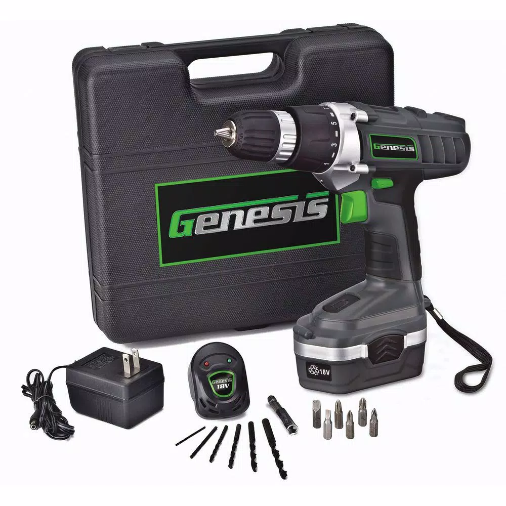 The Genesis GCD18BK 18-Volt Cordless Drill / Driver is a full-featured, versatile tool that is perfect for all your projects and home handyman jobs. With a keyless chuck, variable speed, clutch settings, a bubble level, a magnetic bit tray and an LED work light, you get many features that you normally see only on much more expensive drills. The removable battery pack recharges in 3 to 5 hours. You can buy a second battery if you need non-stop performance. This drill comes in a complete kit with battery, charger, a 13-piece drill/driver bit set and a heavy-duty storage case for protection and transportation.