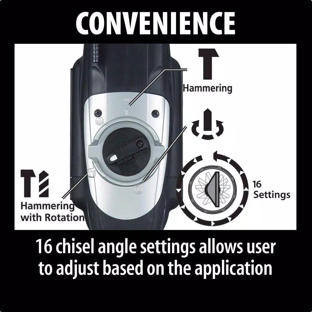 - Lock-on switch for continuous operation (βhammering onlyβ mode)