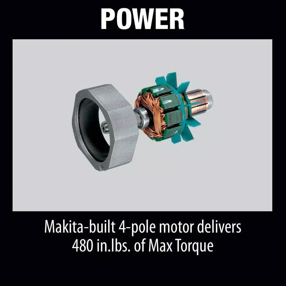 - Makita-built 4-pole motor delivers 480 in. lbs. of max torque