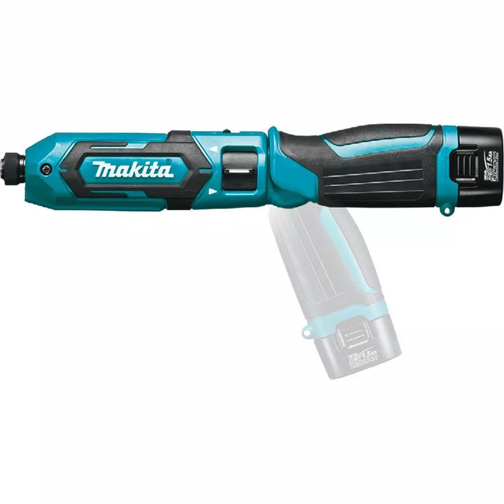 The Makita 7.2-Volt Lithium-Ion Cordless 1/4 in Hex Impact Driver Kit delivers convenience and precision in an ultra-compact size. With 2-speed settings, variable speed (0-2,450 RPM and 0-3,000 IPM) and 220 in.lbs. of maximum torque, users have more control for a range of applications. The TD022DSE has a convenient 1/4 in. hex chuck for quick bit changes, with an ergonomically-located forward/reverse switch for added convenience. It will operate in straight or pistol grip positions, weighs only 1.2 lbs. and has a soft-grip handle for added comfort. With the ultra-compact size itโs ideal for precision applications in tight spaces and can also be used as a hand-driven screwdriver to securely fasten screws to a proper torque.