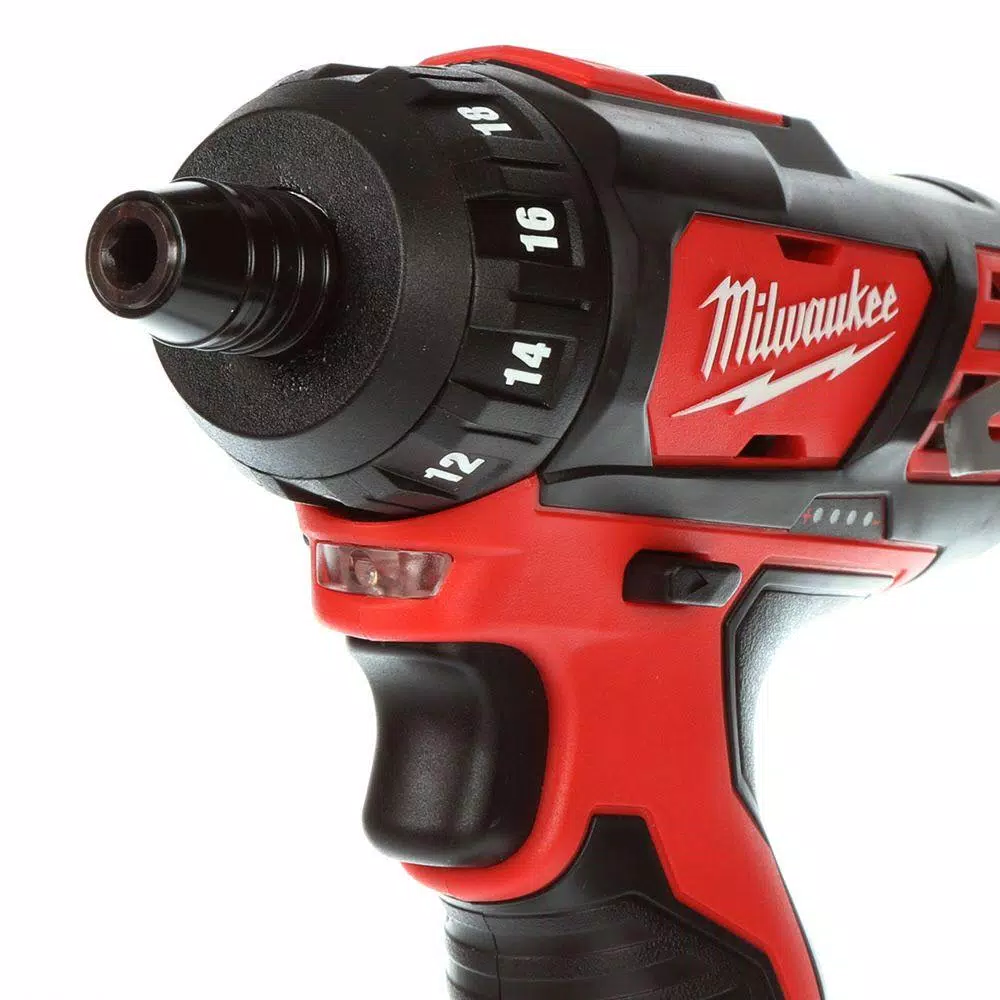 The powerful Milwaukee M12 Cordless 2-Speed Screwdriver delivers 275 in./lbs. of torque and 0400 RPM/01500 RPM. Its compact and durable design is great for working in tight spaces. Thereโs also an on-board LED light to help illuminate dimly lit areas. At only 6-3/4 in. L and 2.2 lbs. its easy to carry around for all-day comfort on the job.