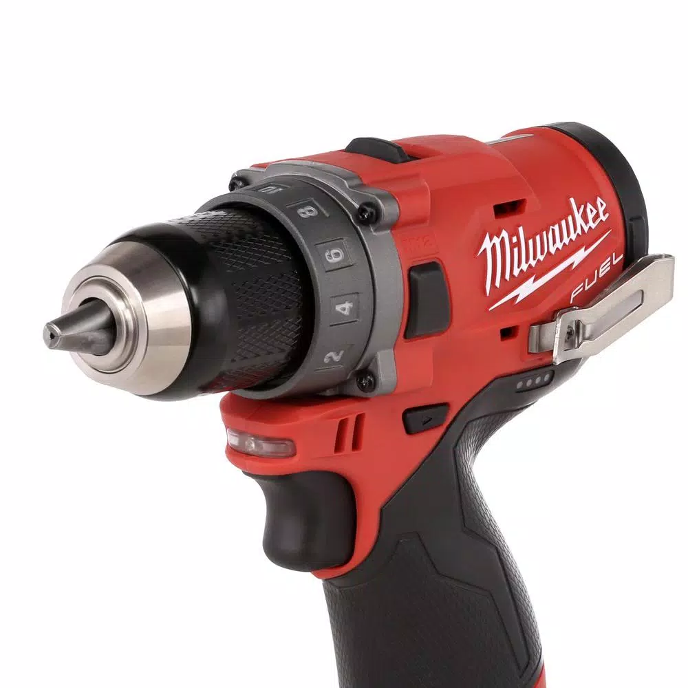 This 1/2 in. drill driver is lightweight and compact with the power to perform a range of applications. Its brushless motor delivers 1700 RMPs and 350 in./lbs. of torque. This portable drill weighs just 2.3 lbs., which is great for overhead positions. It measures 6.6 in. L, helping you access tight spaces with ease. This reliable tool features REDLINK Plus Intelligence to protect it from overloading and overheating. It uses REDLITHIUM battery packs to deliver more work per charge. This power drill includes a 1/2 in. metal chuck for maximum grip and bit retention. It comes equipped with a drill driver and belt clip.
