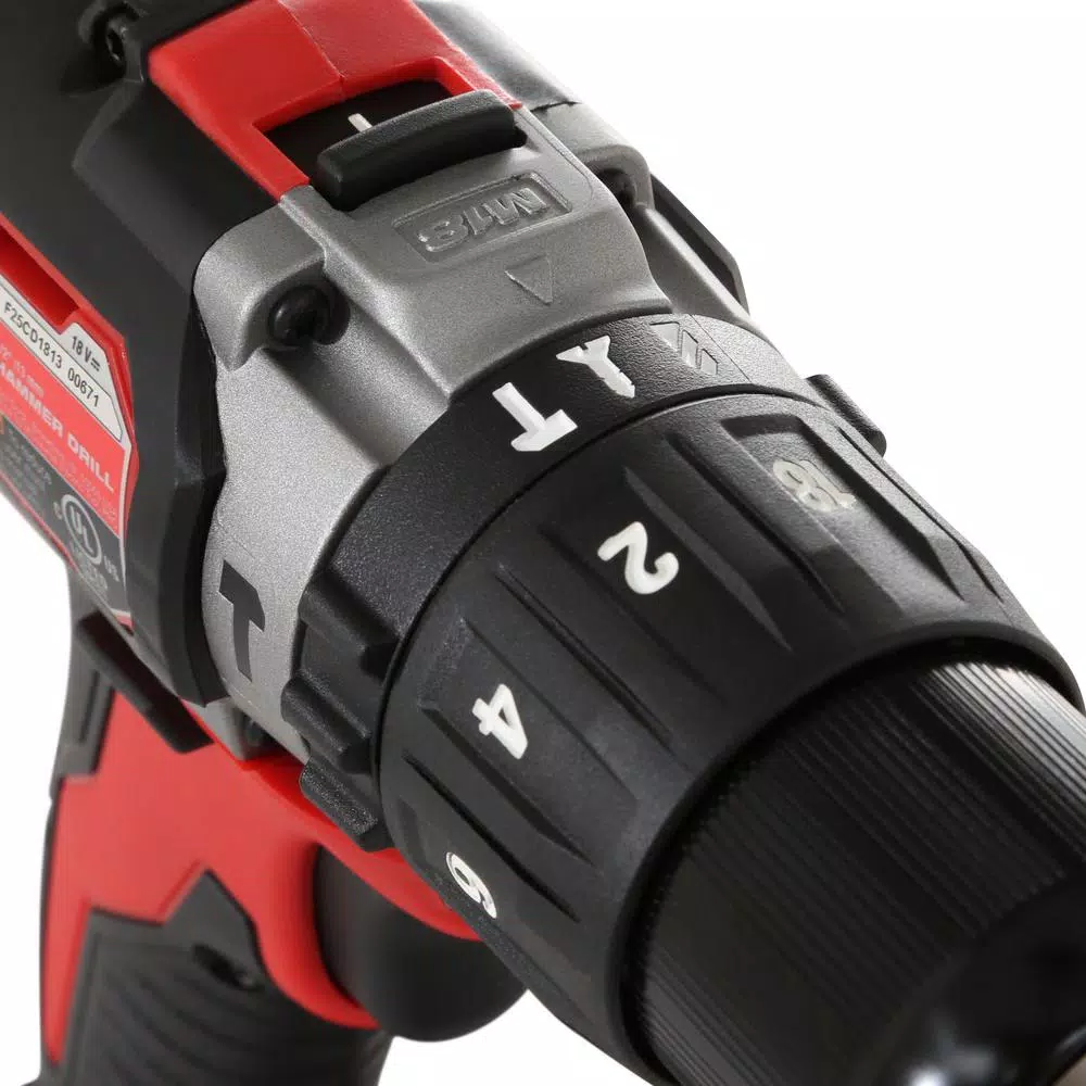 The most Compact Hammer Drill/Driver in its class is more powerful than the competition. Built with a Milwaukee 4-Pole frameless motor, the M18 Compact 1/2โณ Hammer Drill/Driver delivers 500 in-lbs of torque and up to 1,800 RPM. ย At only 7-3/4โณ length, this drill driver allows you access to the tightest work spaces. An all-metal gear case and 1/2โณ metal chuck provide maximum durability, even on the most challenging jobsites. ย REDLINK ย Intelligence provides advanced protection in abusive situations and manages the toolโs temperature to provide maximum life.