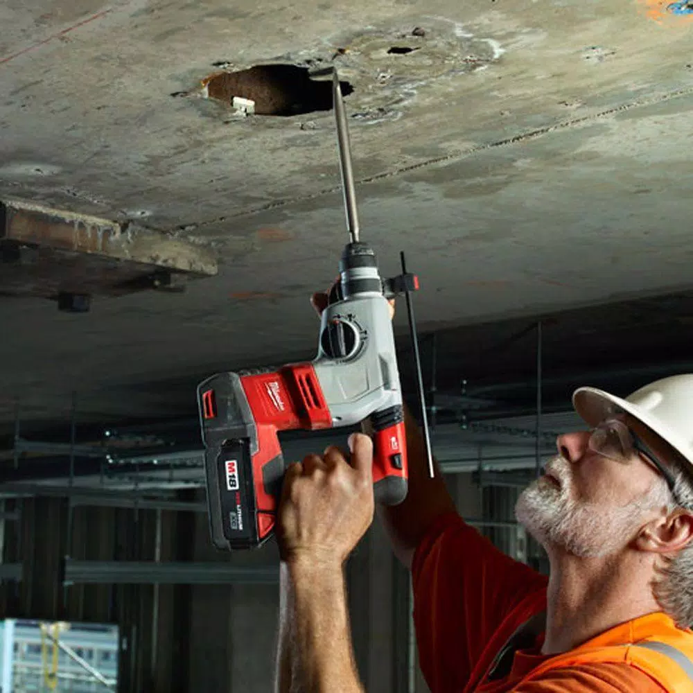 - Includes: M18 cordless lithium-ion 7/8 in. SDS-Plus rotary hammer (2605-20), M18 REDLITHIUM XC extended capacity battery (48-11-1828), M18 and M12 multi-voltage charger (48-59-1812), carrying case, depth rod and side handle