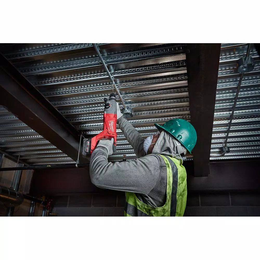 Powered by FUEL technology, the M18 FUEL 1 in. SDS Plus D-Handle Rotary Hammer delivers faster than corded speed, corded durability and all day work on one charge. The Milwaukee POWERSTATE Brushless Motor Provides 2.1 ft. lbs. of impact energy, 0-1,500 RPM and 0-4,400 BPM. The M18 REDLITHIUM HIGH DEMAND 9.0 Battery Pack delivers up to 5X more run-time, 35% more power and runs 60% cooler than standard 18-Volt lithium-ion batteries. It maintains full power and runs substantially cooler through heavy applications, allowing users to push their cordless tools harder and longer than ever before. The M18 REDLITHIUM HIGH DEMAND 9.0 battery is fully compatible with 175+ M18 tools.