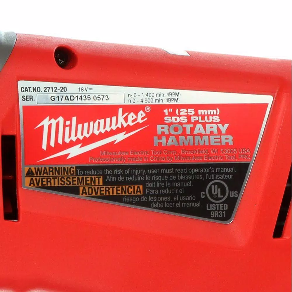 - Includes: one M18 FUEL 1 in. SDS plus rotary hammer (tool only) (2712-20), one M18 and M12 multi-voltage charger (48-59-1812), two M18 REDLITHIUM XC 5.0 Ah extended capacity battery pack (48-11-1850), 1 side handle, 1 carrying case, 1 depth rod