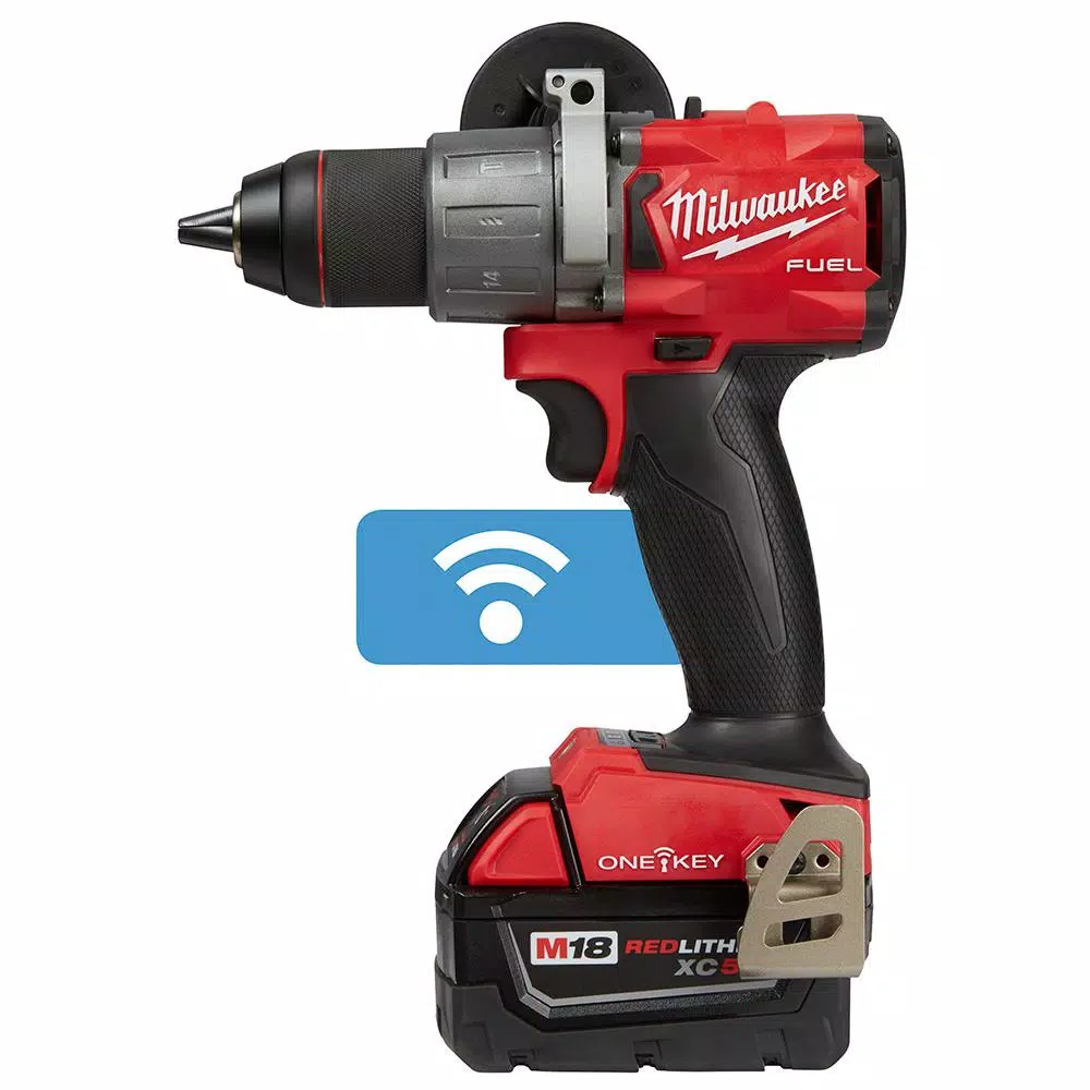 The Milwaukee M18 FUEL 1/2โณ Hammer Drill with ONE-KEY kit is the industryโs most powerful hammer drill, delivering Up To 60% More Power, is Up To 1.5โณ Shorter Length and delivers Up To 2X Faster Speed Under Heavy Load. The POWERSTATE Brushless Motor produces 1,200 in-lbs of torque and 2,000 RPMs providing users with fast drilling through demanding applications. At 6.9โณ in length, this is the most compact hammer drill in its class, giving users better access in tight spaces. REDLINK PLUS Intelligence tool technology allows for maximum performance while protecting the drill from overloads, heating, and over-discharge. The included M18 REDLITHIUM XC5.0 Battery Packs deliver more work per charge and more work over the life of the packs than competitors. The best-in-class all-metal ratcheting chuck provides increased bit strength and corrosion resistance. With ONE-KEY, users gain the ability to Customize, Track and Manage their tool. Anti-Kickback technology increases user control in bind-up situations and reduces unwanted shut-downs, with the added benefit of sensitivity control and ability to turn on and off based on application. If the tool is ever lost or stolen, its tracking functionality can lock it out to protect the investment.