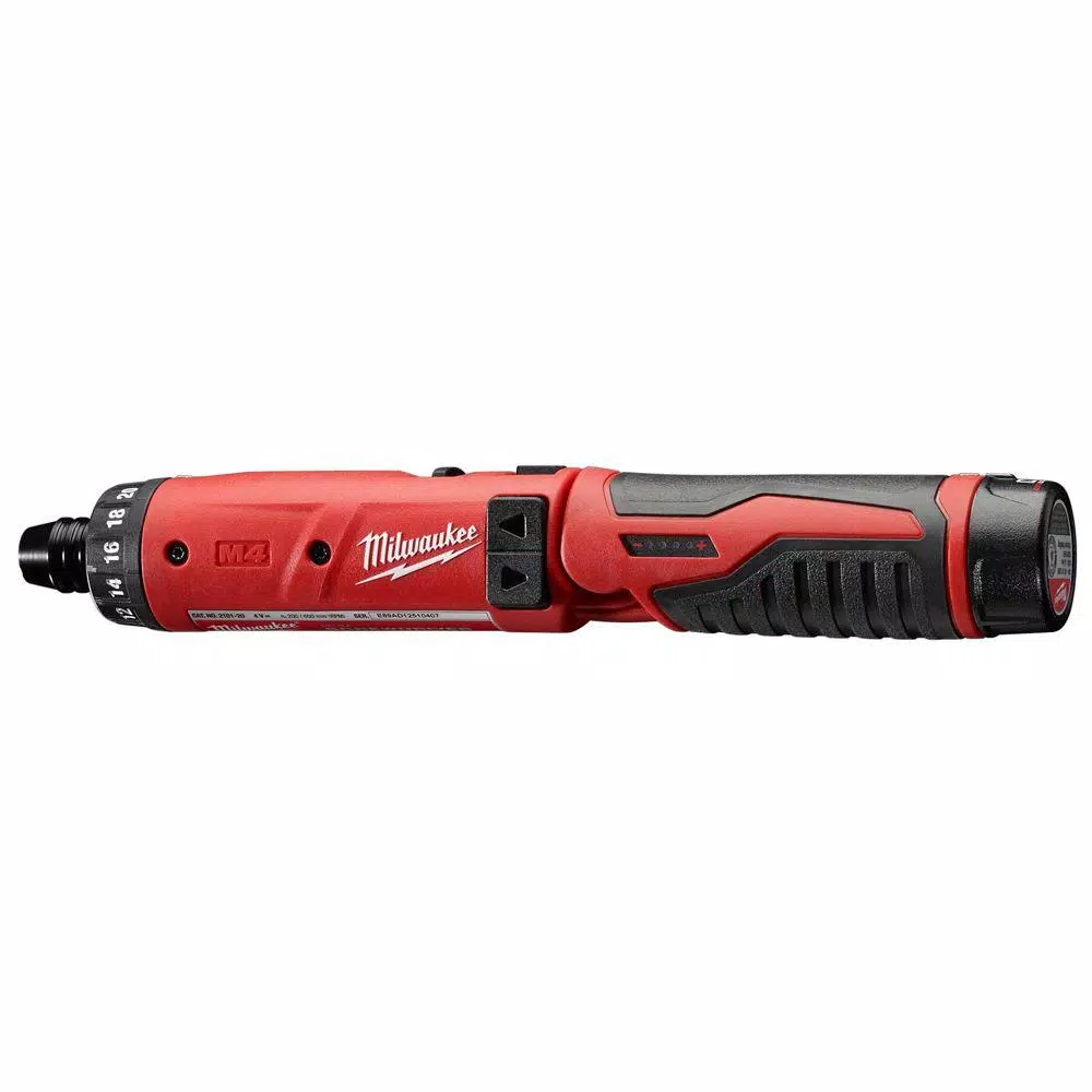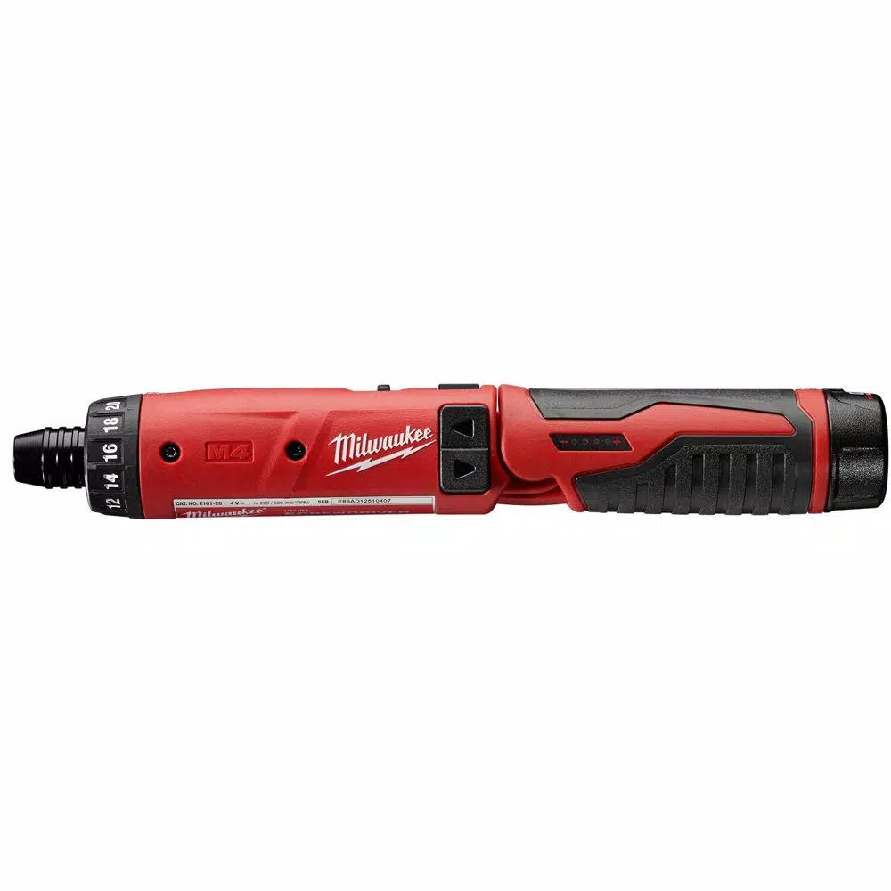 This cordless 4-volt Screwdriver incorporates the latest Milwaukee core technologies in motor, Red Link Intelligence electronics and Red lithium 2.0 batteries, increasing the toolโs power and run-time, while shrinking its size. It has a 21 position clutch with auto shut-off that stops rotation of the bit once the desired torque setting is met. The quick-change chuck allows for one-handed bit changes, and a snug bit grip prevents dropped screws when the screwdriver is inverted. Drill mode easily drills pilot holes or removes damaged screws.