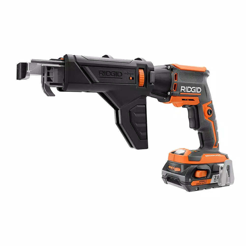 RIDGID introduces the 18-Volt Cordless Brushless Drywall Screwdriver with Collated Attachment (Tool Only). This tool offers 2-in-1 functionality, both drywall nose cone and collated attachment, to help tackle a variety of applications. With registration, this kit is backed by the Industry’s Only Lifetime Service Agreement. The Brushless Drywall Screw Gun includes a collated attachment, a drywall nose cone, a bag and an operator’s manual. Battery and charger sold separately.