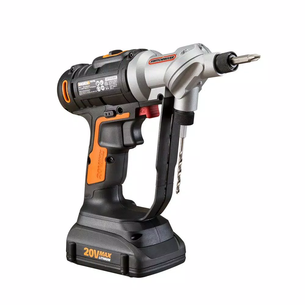 Drill a pilot hole, turn the head and drive in the screw, drill another pilot hole, drive in another screw all without changing out a bit or grabbing another drill. The Switchdriver with 67-Piece Accessory Kit from Worx is the most flexible and well-rounded drilling bundle money can buy. It’s compact and lightweight—less than 3 lbs—so it’s easy to maneuver and use for long stretches without your hands getting tired and cramped. Yet there are so many modern features onboard that this drill hardly requires any hard work from you, anyway. 12 electronic torque settings, and 2 speeds (0-400 rpm / 0-1500 rpm) let you find just the right amount of power and rotation for each task—and once you do, those screws slide in easy and almost seat themselves. No more fumbling with bits in your pocket when you’re on a ladder and then dropping them down to the ground, because your two favorite bits live on the tool. You can even rotate between bits with just one hand so you can use your free hand to steady the project (just press the rotation release button, and press the rotating head against your other forearm to advance to the next bit). Any project that requires a lot of drilling, and/or a lot of switching between bits, like building a deck, is perfect for the Switchdriver. You’ll save so much time and strain. And when you do need to manually switch out bits, the ¼” chucks change out without the need for tools or a hex key.